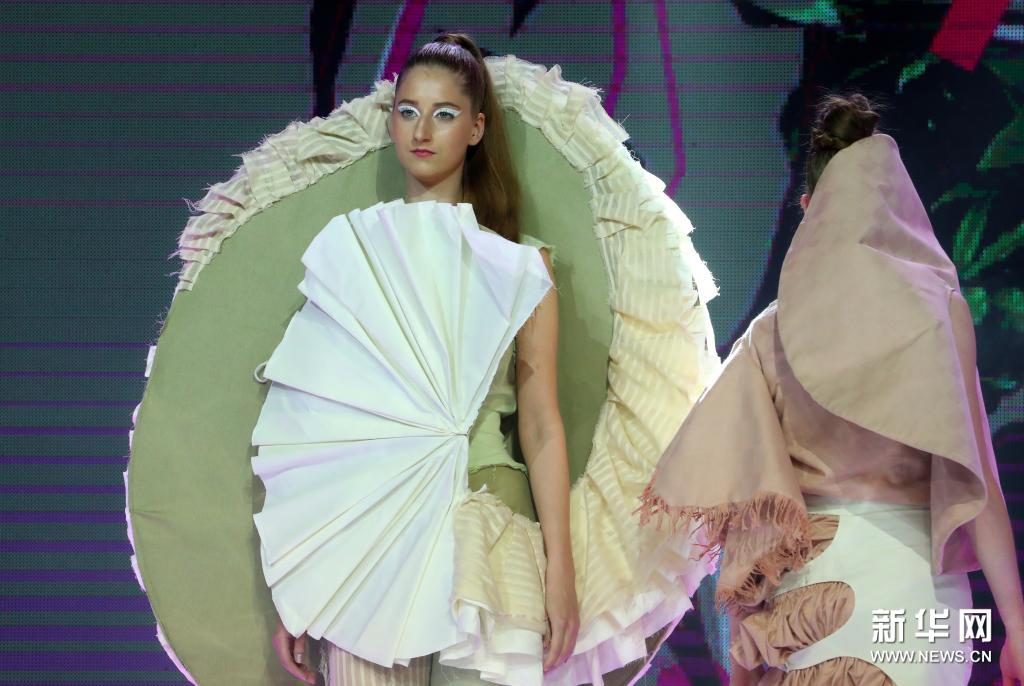 6月9日,在白俄羅斯明斯克,模特在時裝設(shè)計與攝影大賽上展示參賽作品。新華社發(fā)(任科夫攝)