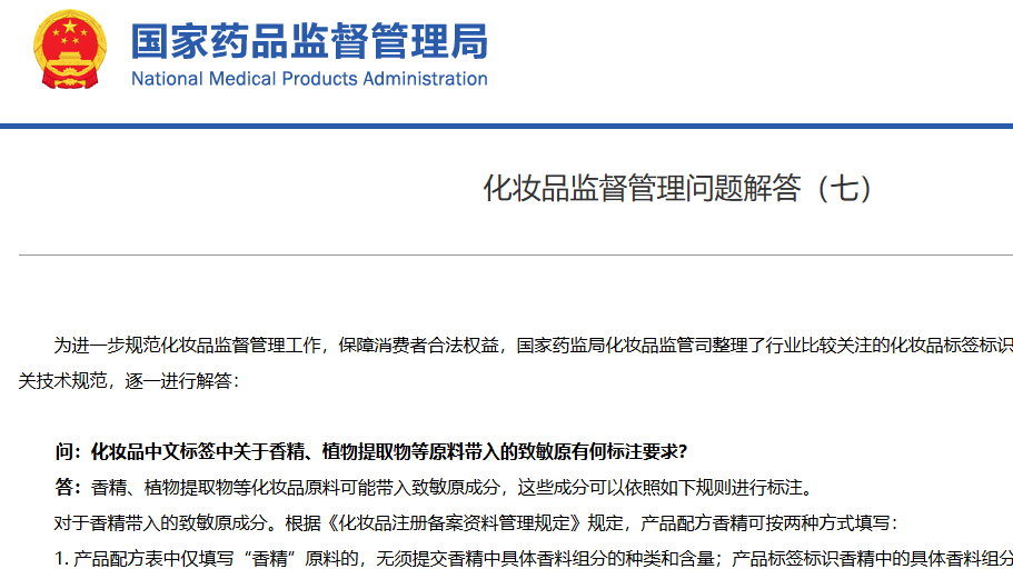 化妝品監(jiān)督管理問(wèn)題解答(七)