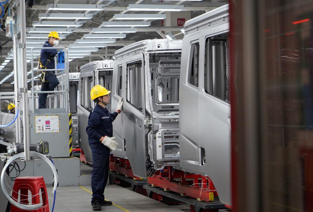 这是湖南省长沙市三一智联重卡产业园内的生产场景。新华社记者余春生 摄