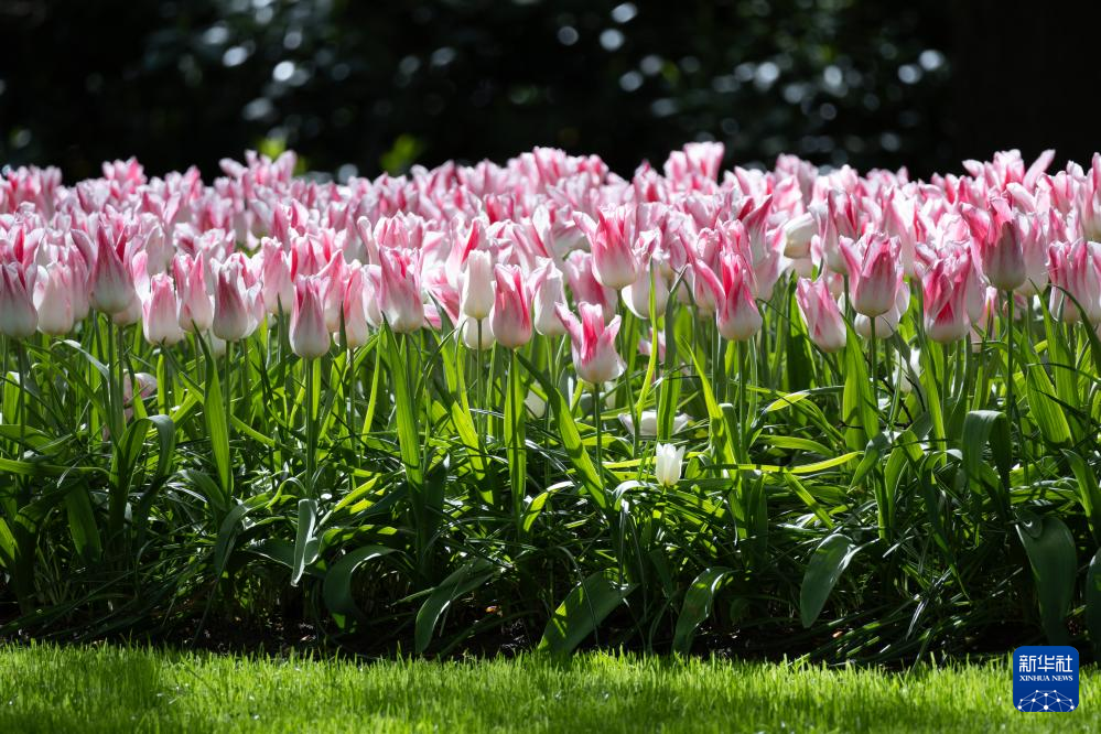 4月14日在荷兰利瑟库肯霍夫公园拍摄的郁金香。新华社记者 孟鼎博 摄