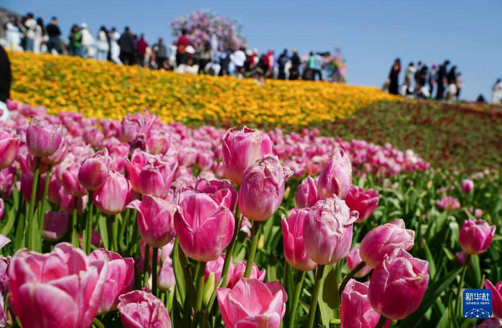 在淄博市博山区红叶柿岩景区拍摄的郁金香。新华社记者 徐速绘 摄