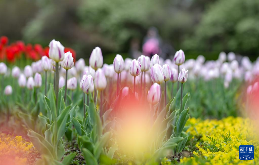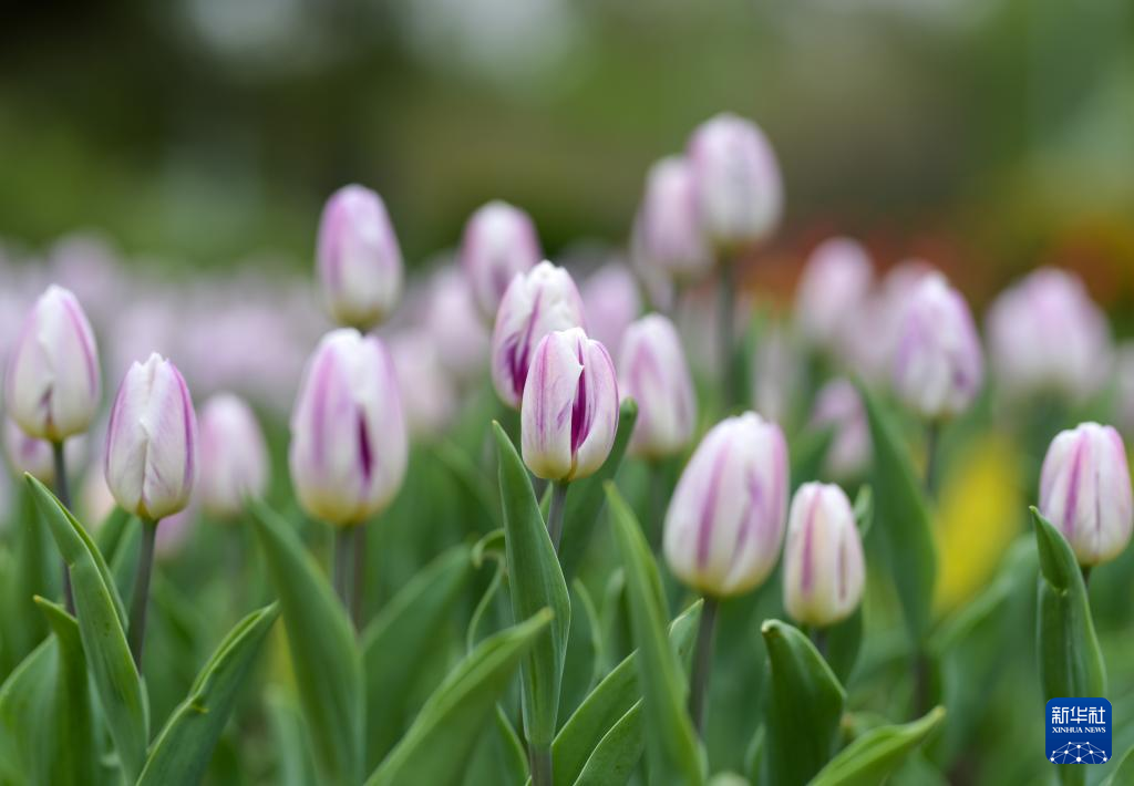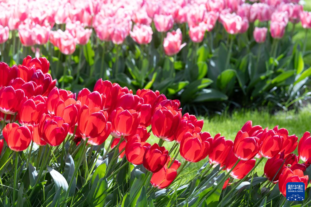 在哈萨克斯坦阿拉木图的中央休闲公园拍摄的郁金香。新华社记者 李任滋 摄