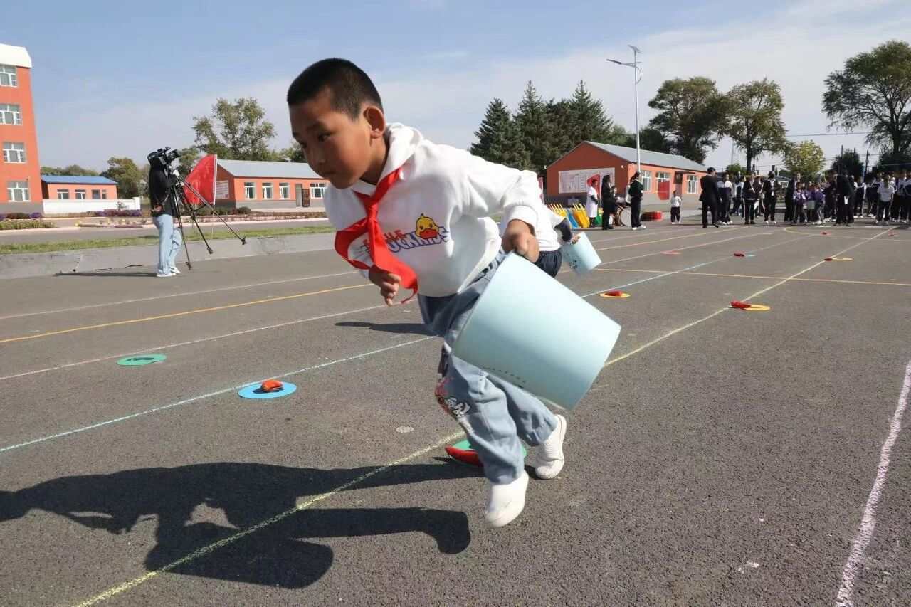 比赛环节,更是精彩纷呈。发展乡中心学校50米跑、企鹅漫步、100米跑、赶猪跑、立定跳远、200米跑、端球跑、比谁准、400米跑和4x100米接力等十个项目,覆盖了一至九年级的学生。曙光乡中心学校独轮车运南瓜、套圈摘果蔬、插秧比赛、春种秋收接力、30米拖球跑接力、篮球运球接力、60米跳绳跑、立定跳远、实心球投远、跳绳、足球障碍运球接力、拔河比赛等项目,全校学生都参与其中。