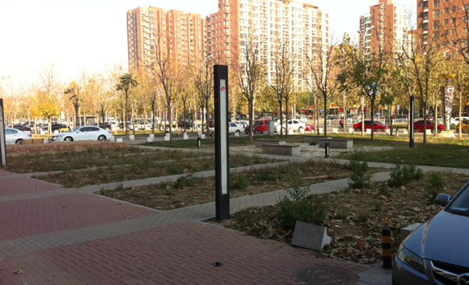 也許是波普公社剛建成的原因,小區(qū)的綠化還未成形,從目前的狀況來(lái)看,樹(shù)木和綠地都剛剛植入,應(yīng)該要經(jīng)過(guò)一段時(shí)間的培育之后,才能達(dá)到綠化的效果。