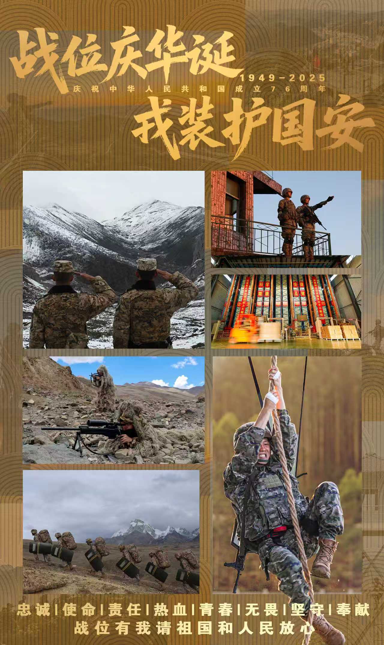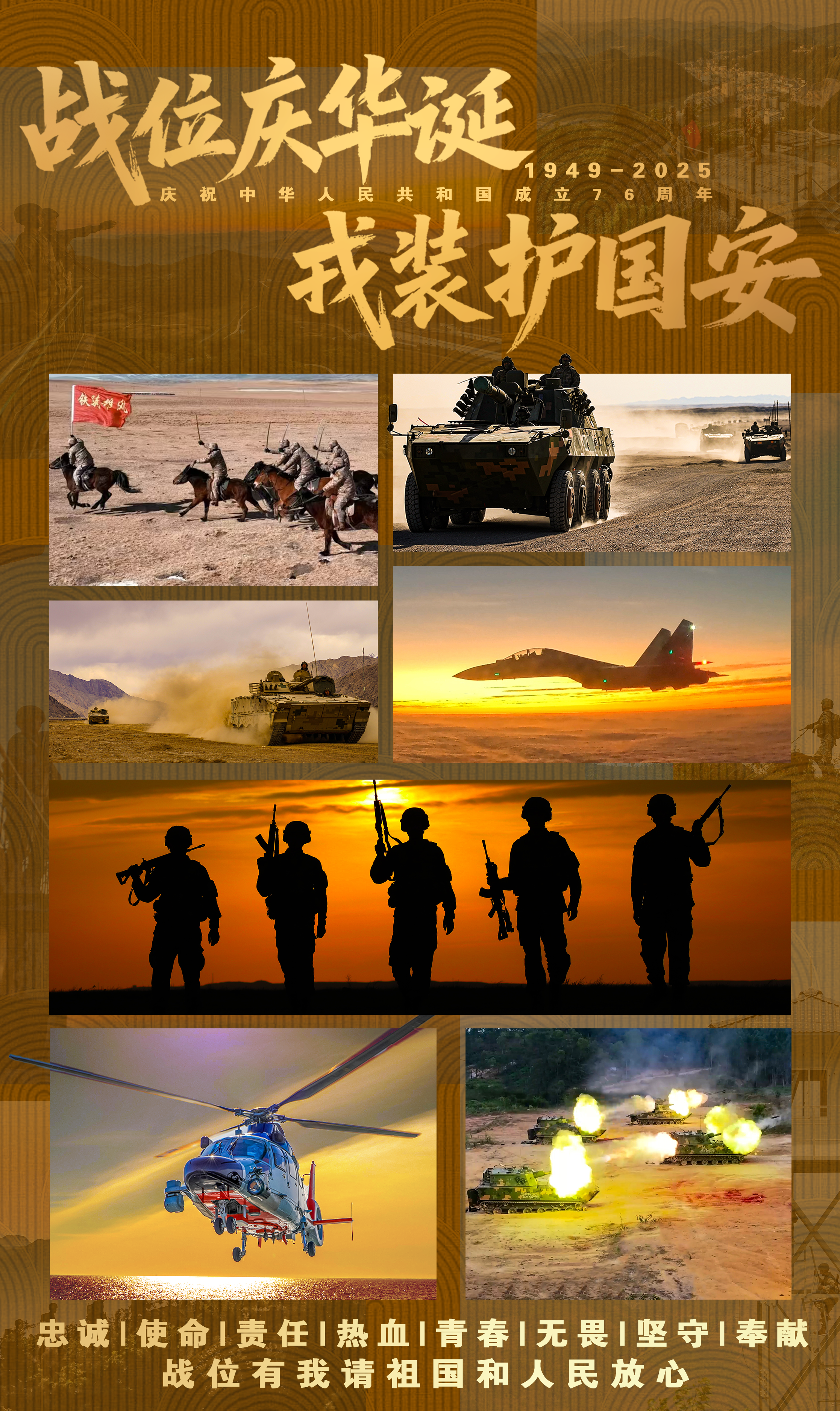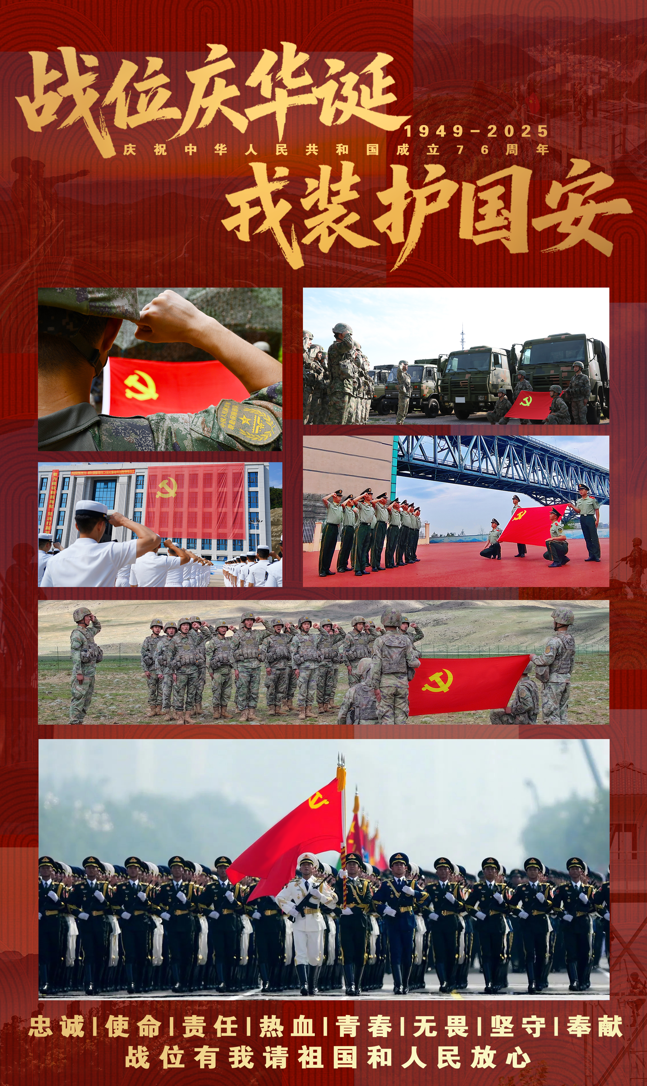 战位庆华诞,戎装护国安。人民子弟兵坚守战位,以忠诚为魂、以使命为炬,他们在各自战位上践行“战位有我,请祖国和人民放心”的誓言,用奉献书写新时代的家国担当。