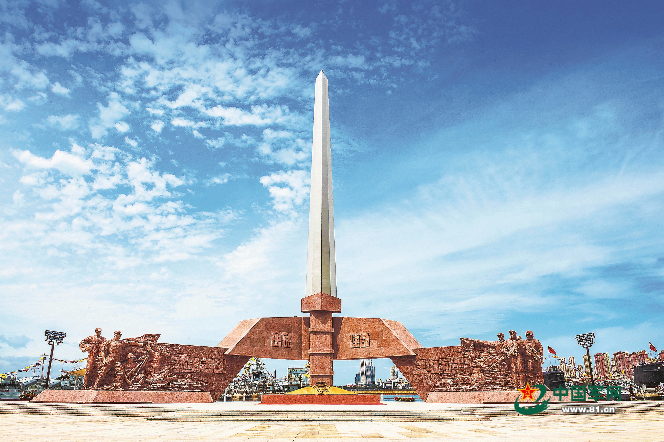 “我们的征途是星辰大海。”在海军博物馆的前广场上,阳光照耀下的“亮剑深蓝”主题雕塑在蓝天白云衬托下格外醒目,雕塑整体如同起锚待发的战舰,一把利剑如桅杆直插云霄。
