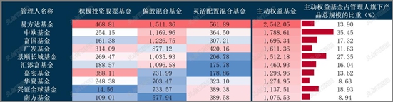 来自中金公司研究部的统计数据显示,截至6月30日,主动权益基金规模排名前10的机构依次是:易方达基金、中欧基金、富国基金、广发基金、景顺长城基金、汇添富基金、华夏基金、嘉实基金、兴证全球基金、南方基金,其主动权益基金资产规模分别为:2413.6亿元、1751.8亿元、1692.2亿元、1557.2亿元、1504.5亿元、1458.6亿元、1273.2亿元、1264.8亿元、1151.5亿元、1057.1亿元。