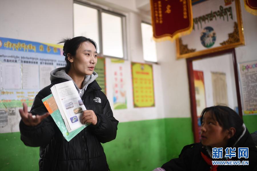 3月16日,索加鄉(xiāng)寄宿小學語文老師查日在為學生上課。新華社記者 張宏祥 攝