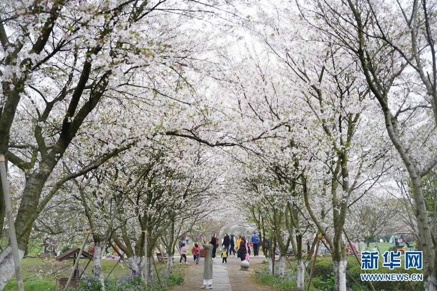 近日,江西省南昌縣鳳凰溝景區(qū)3萬(wàn)株櫻花競(jìng)相綻放,吸引游客前來賞花踏青,樂享春光美景。