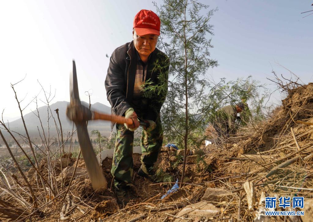 3月31日,造林隊員在河北省遵化市石門鎮(zhèn)金星山植樹。