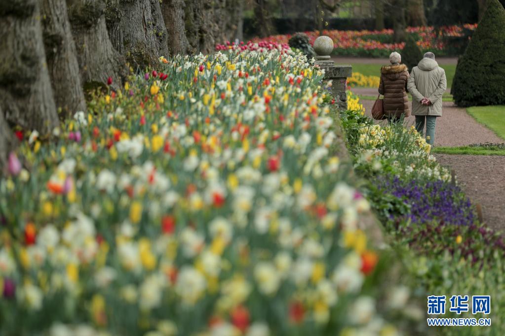 4月14日,民眾在比利時(shí)布魯塞爾以西的拜加登城堡參觀花展。