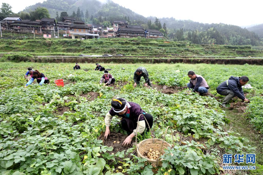 4月20日,在廣西三江侗族自治縣良口鄉(xiāng)寨塘村,村民在采收小土豆。