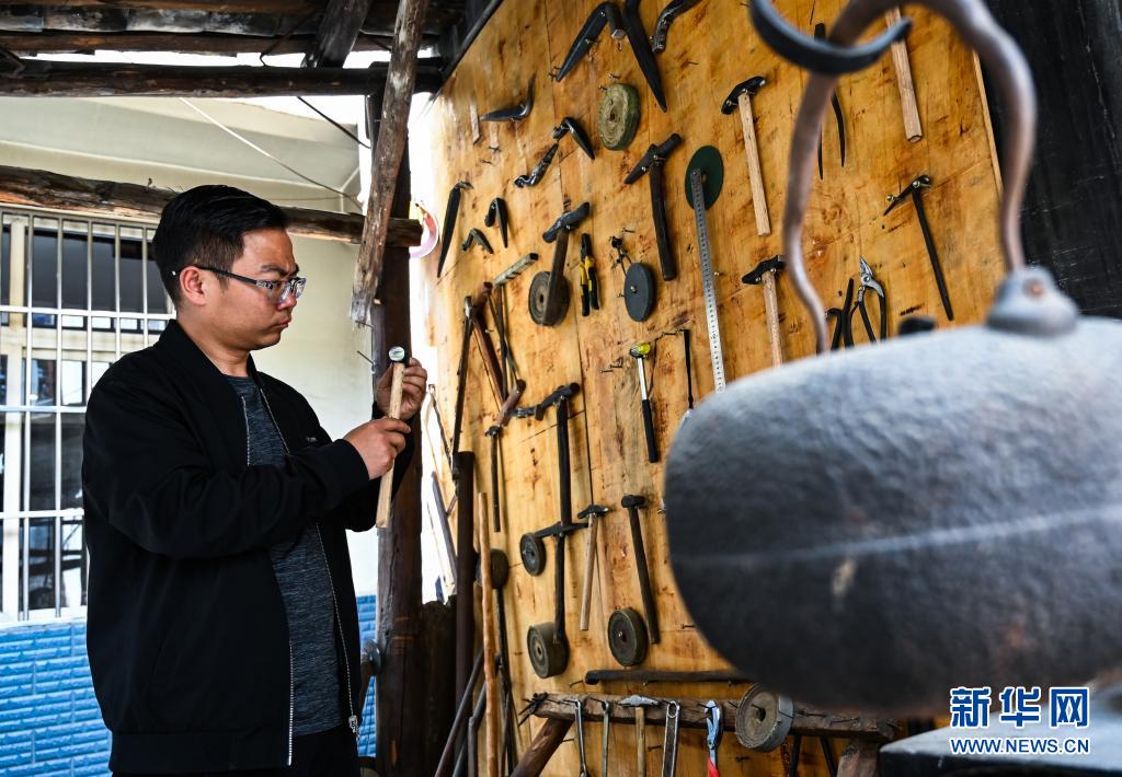 地處滇東北、烏蒙山腹地的云南會(huì)澤縣流傳著具有300多年歷史的斑銅制作工藝。斑銅工藝復(fù)雜,要采用高品位的銅為原料,經(jīng)過(guò)20余道工序制作而成。產(chǎn)品“妙在有斑,貴在渾厚”,風(fēng)格獨(dú)樹(shù)一幟。33歲的張偉是會(huì)澤“張氏斑銅”的第十三代傳人。自幼深受地域文化和家庭熏陶的他,大學(xué)畢業(yè)后,返鄉(xiāng)從事斑銅制作工作。在會(huì)澤古城的“銅匠街”,張偉創(chuàng)辦了斑銅傳習(xí)館,不斷研發(fā)斑銅新產(chǎn)品、傳承著這項(xiàng)非遺技藝?!鞍咩~是一種情感、一種文化,希望在我們這代人的努力下能夠更好地將它傳承下去,讓更多人了解斑銅的獨(dú)特魅力。”張偉說(shuō)。