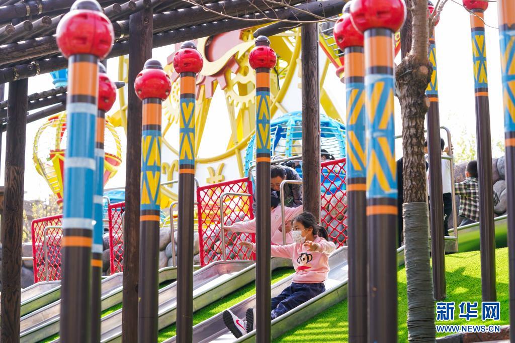 5月1日,在哈爾濱市的波塞冬旅游度假區(qū)海底世界親子樂園,小朋友在一處游樂設(shè)施內(nèi)玩耍。