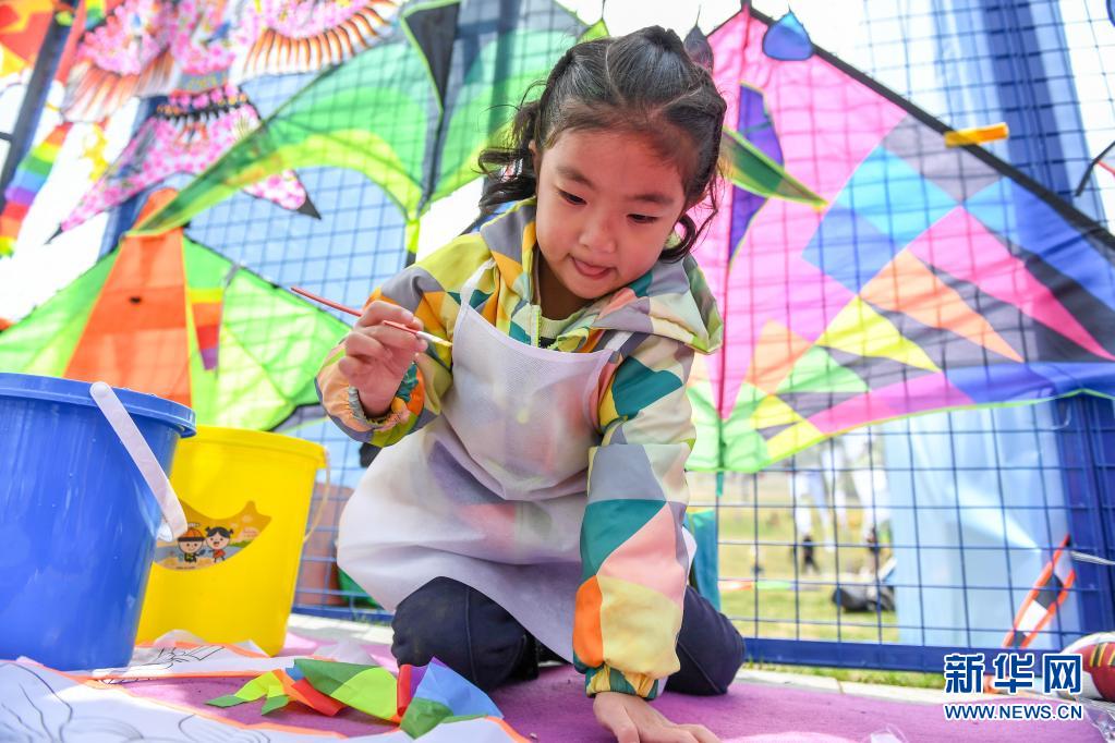 5月1日,在吉林市萬(wàn)科松花湖度假區(qū),小朋友創(chuàng)作手繪風(fēng)箏。