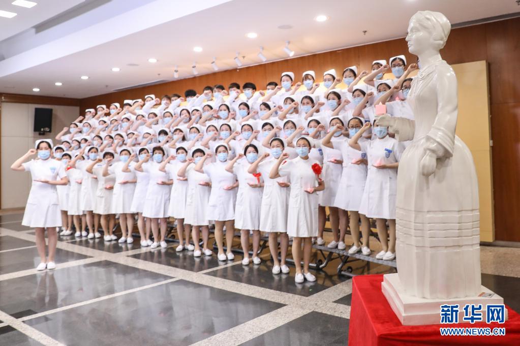 5月10日,北京大學(xué)人民醫(yī)院的新入職護(hù)士一同重溫南丁格爾誓言。