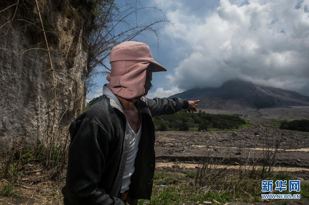 5月13日,在印度尼西亞北蘇門答臘省,一名男子望著錫納朋火山噴發(fā)火山灰。