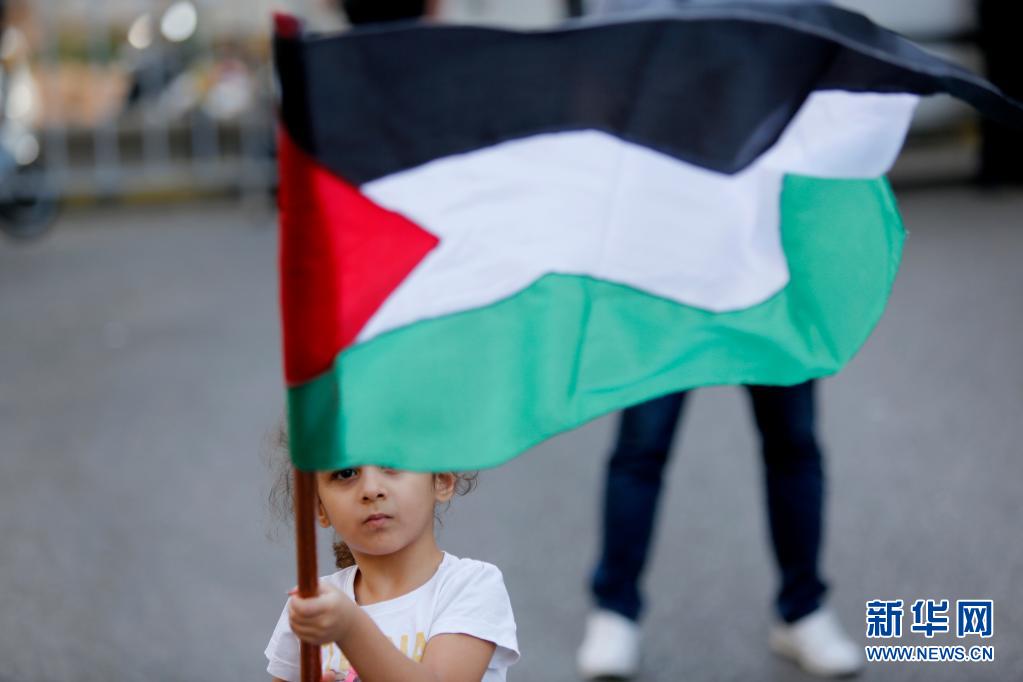 5月15日,一名兒童在黎巴嫩首都貝魯特參加抗議示威活動,聲援巴勒斯坦民眾。