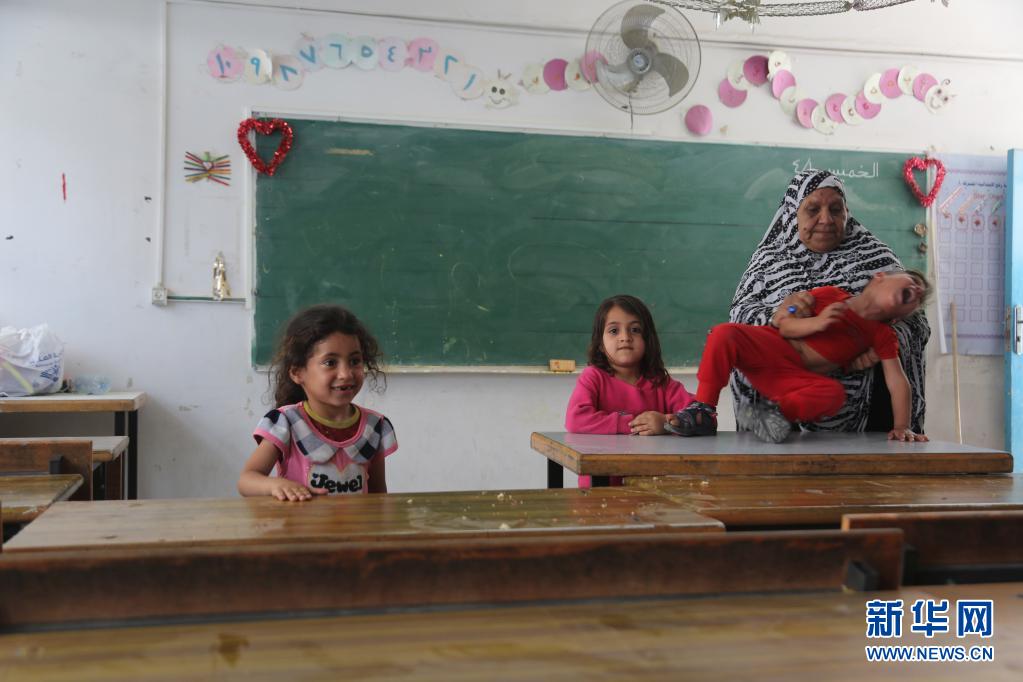 5月17日,受巴以沖突影響而逃離家園的巴勒斯坦婦女和兒童在加沙地帶拉法的一所學(xué)校臨時(shí)棲身。