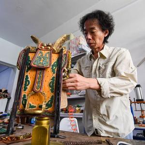 騎馬、射箭、摔跤并稱(chēng)為蒙古族的“男兒三藝”。在內(nèi)蒙古錫林郭勒盟錫林浩特市,蒙古族手工藝人錫林虎,從2005年起致力于傳承民族特色文化,將“男兒三藝”中的傳統(tǒng)元素——馬鞍、弓箭、摔跤服融入工藝品制作中,打造出一件件獨(dú)具匠心的民族特色藝術(shù)品,受到牧民和游客的喜愛(ài)。
