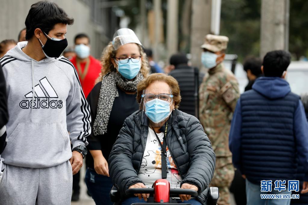 6月6日,在秘魯首都利馬,一名老人在家人陪伴下坐電動(dòng)輪椅前往投票站投票。