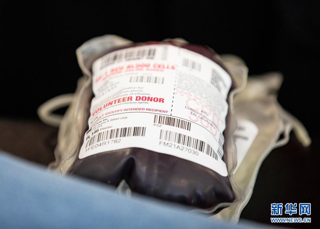 這是6月14日在美國芝加哥的大芝加哥地區(qū)紅十字會一獻(xiàn)血站內(nèi)拍攝的血袋。新華社發(fā)(喬爾·萊納攝)