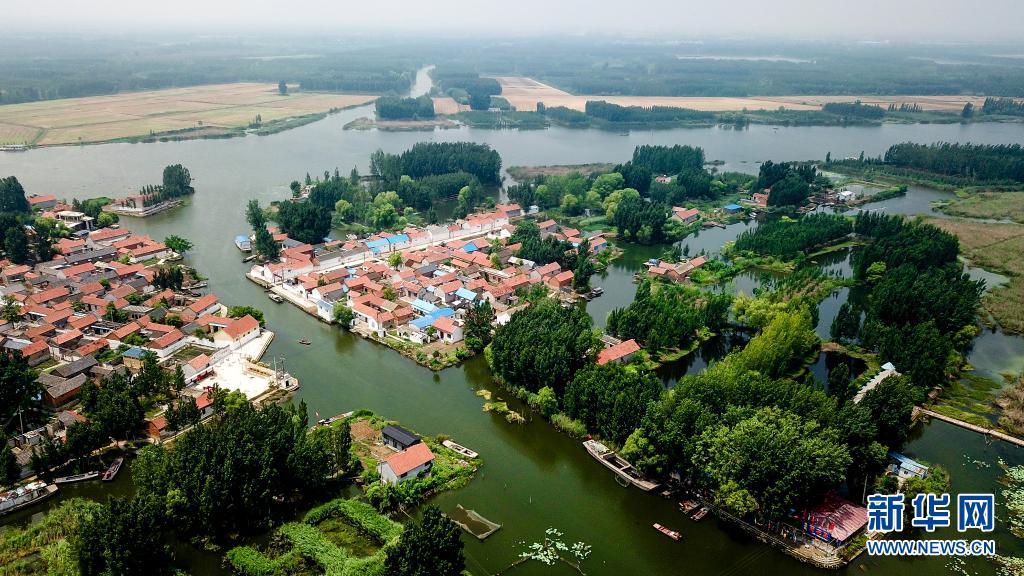 這是郵遞員王少朋服務(wù)的微山縣南陽鎮(zhèn)柳溝村和龔莊村(6月20日攝,無人機照片)。