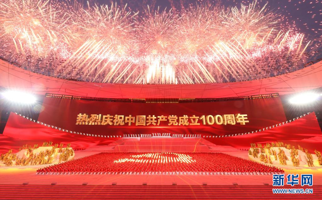 6月28日晚,慶祝中國(guó)共產(chǎn)黨成立100周年文藝演出《偉大征程》在北京國(guó)家體育場(chǎng)盛大舉行。這是盛典儀式。