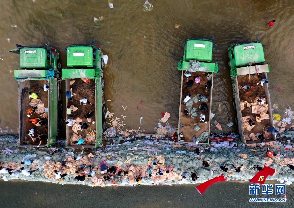 當(dāng)日,在河南省鶴壁市浚縣傅莊堤上,不少群眾自發(fā)前來(lái)和救援人員一起裝沙袋、運(yùn)沙袋,共筑堤壩。受持續(xù)強(qiáng)降雨影響,浚縣防汛形勢(shì)嚴(yán)峻,傅莊堤主要為??h縣城及26個(gè)村莊提供保護(hù)。新華社記者 李安 攝