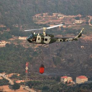 7月29日,黎巴嫩軍方直升機在阿卡爾省火災現(xiàn)場參與滅火行動。