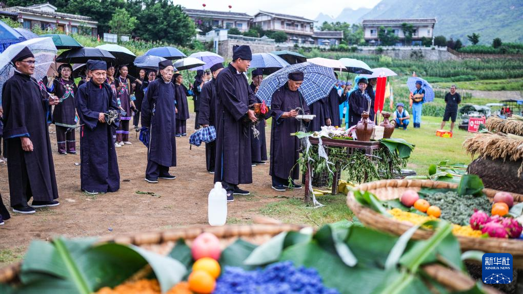 六盘水市六枝特区牂牁镇的布依族群众在进行巡游(6月29日摄)。