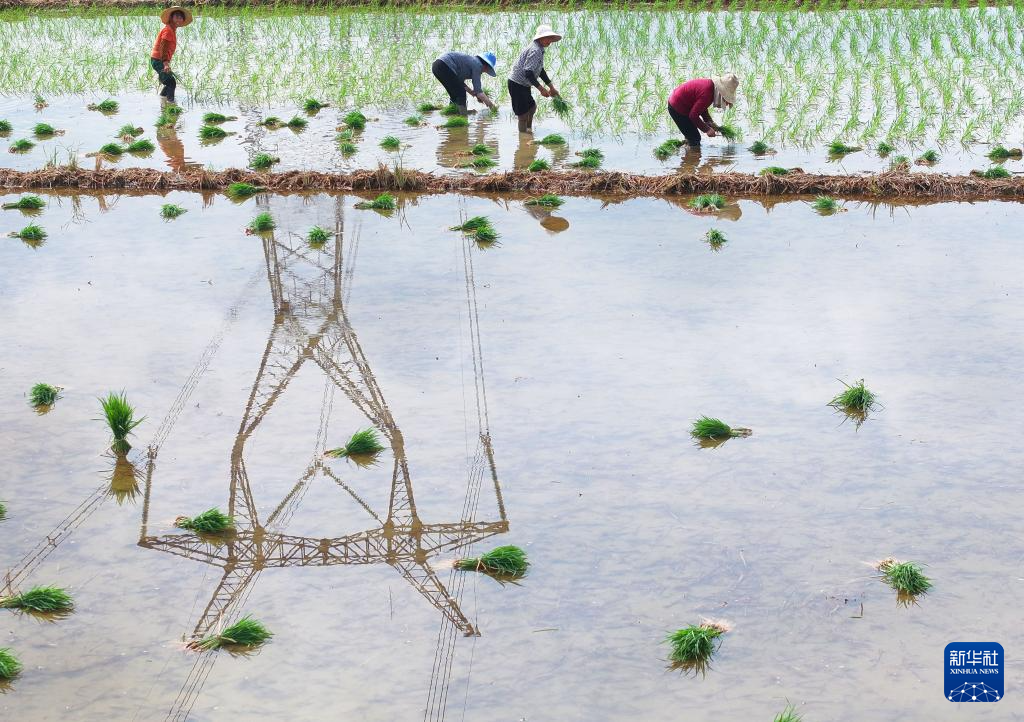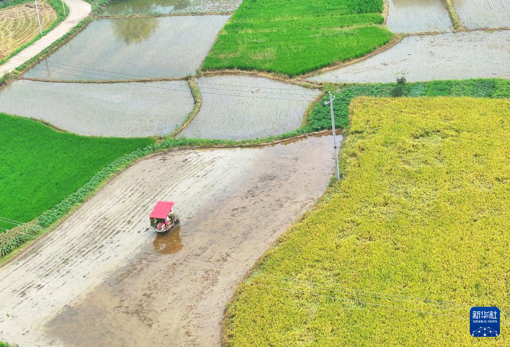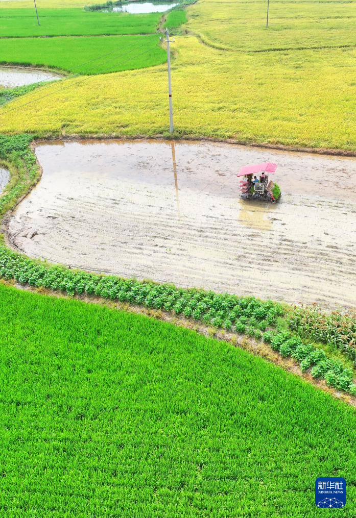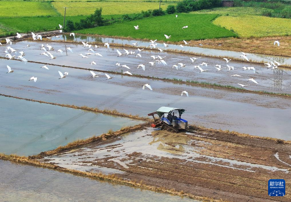 时下正值“双抢”大忙季节,湖南省衡阳市衡东县农民抢抓农时翻耕稻田、抢插晚稻。