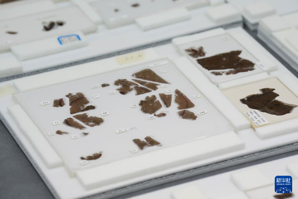 这是9月11日在湖南省博物馆拍摄的部分长沙子弹库战国帛书。