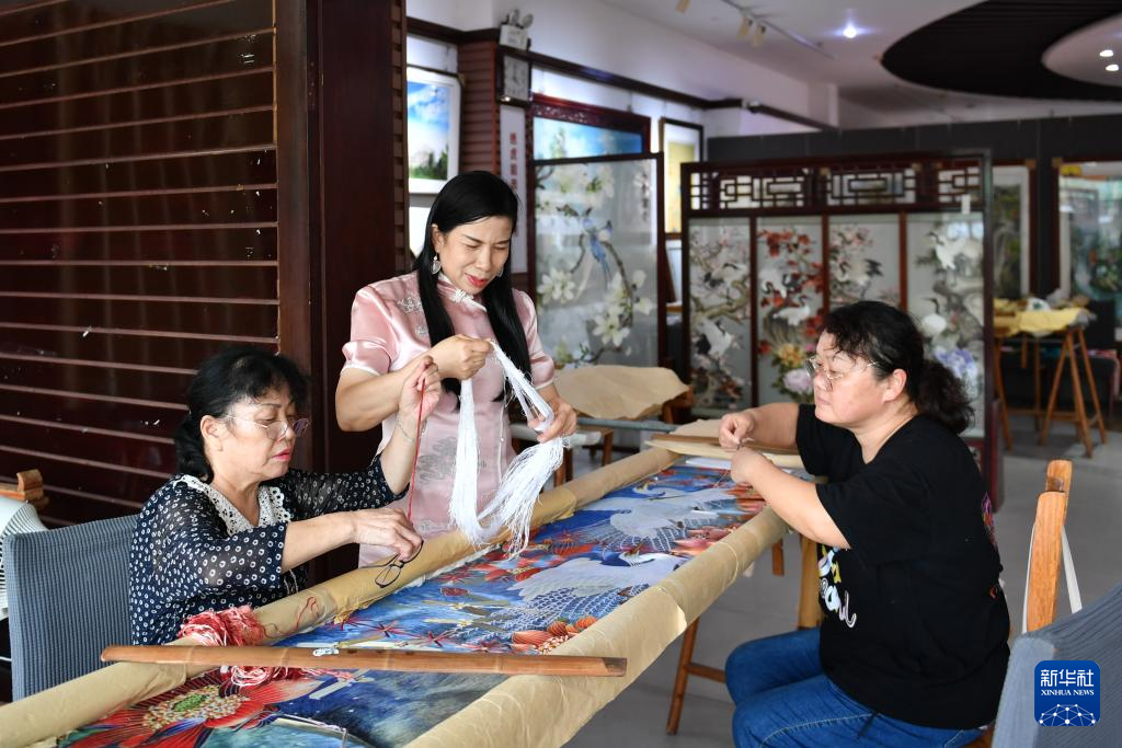 多年来,江再红走进大中小学授艺,带徒传承,积极推广湖湘文化和非遗技艺,培养大批湘绣传人……江再红和团队尝试通过数字化设计、跨界联名、沉浸式体验等形式,探索湘绣的创新发展之路。