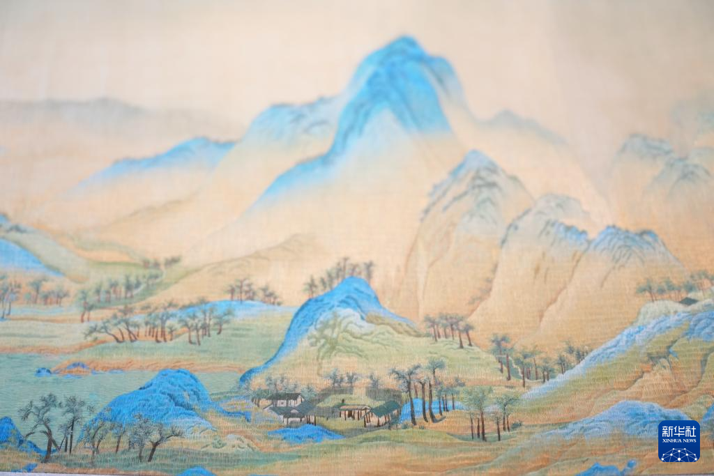 这是在北京举行的全球妇女峰会现场拍摄的江再红的湘绣作品《千里江山图》局部(10月13日摄)。