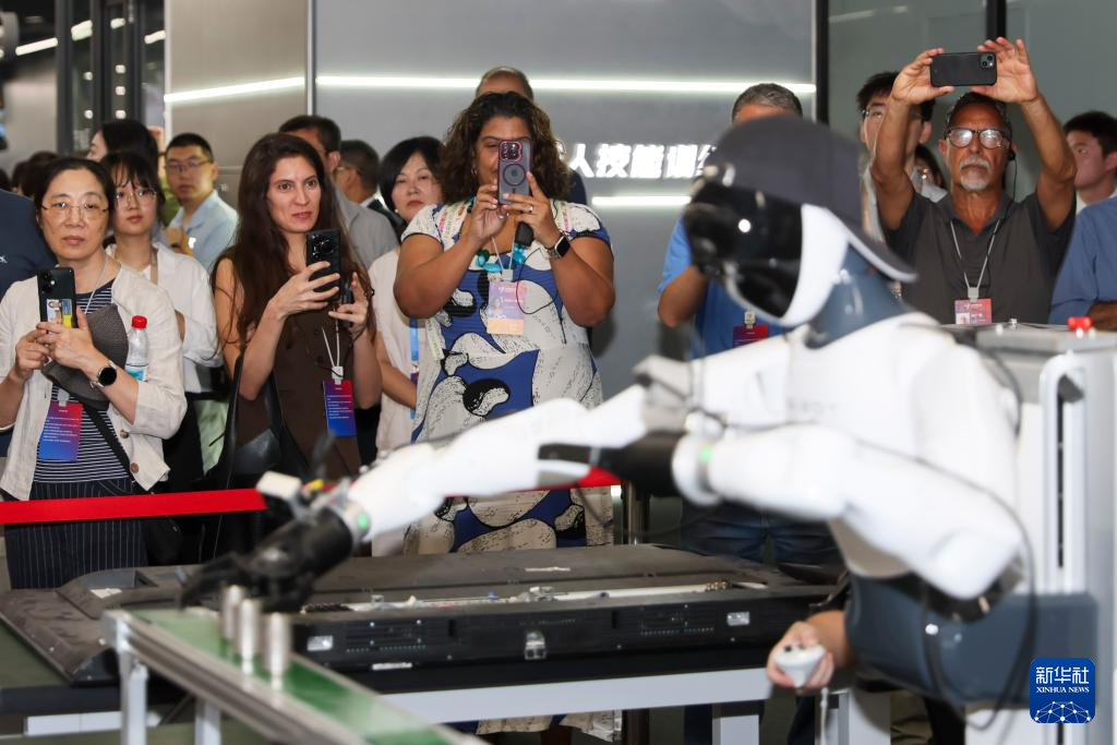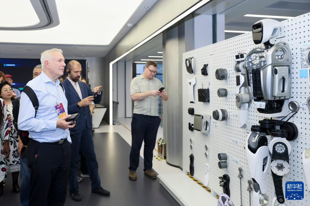 10月13日,嘉宾在上海浦东新区张江科学城内的“模力社区”参观拍摄人形机器人。