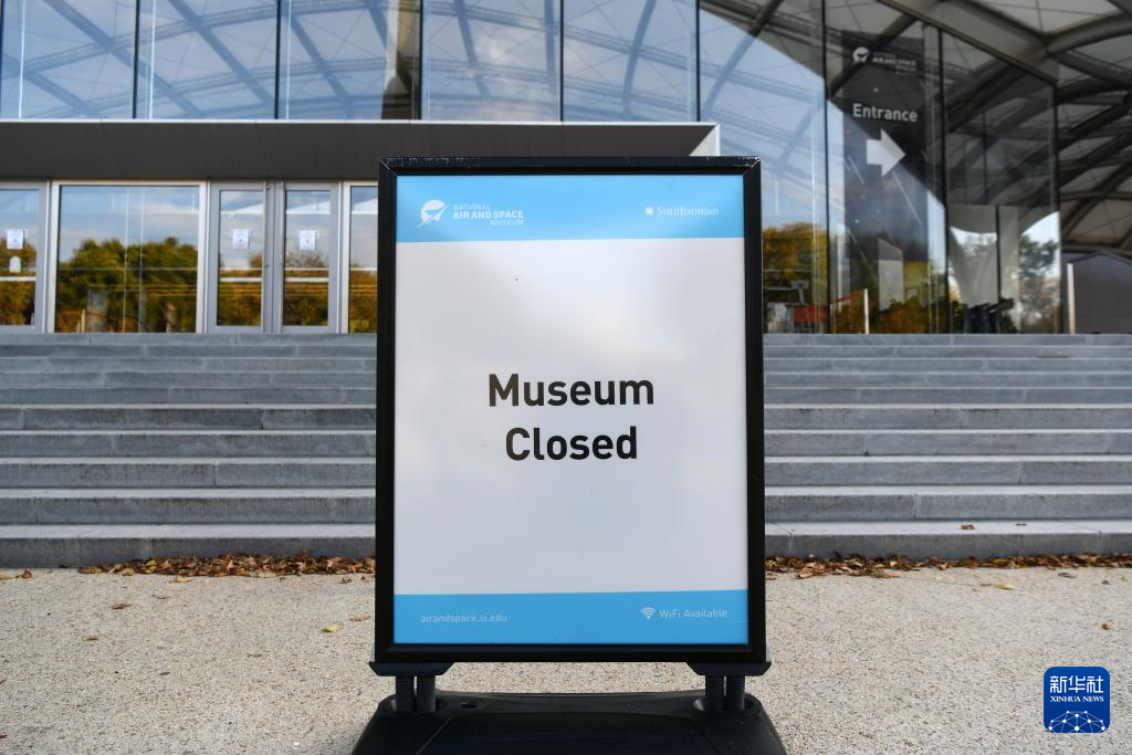 10月21日,公告牌显示位于美国华盛顿的美国国家航空航天博物馆因联邦政府“停摆”而关闭。