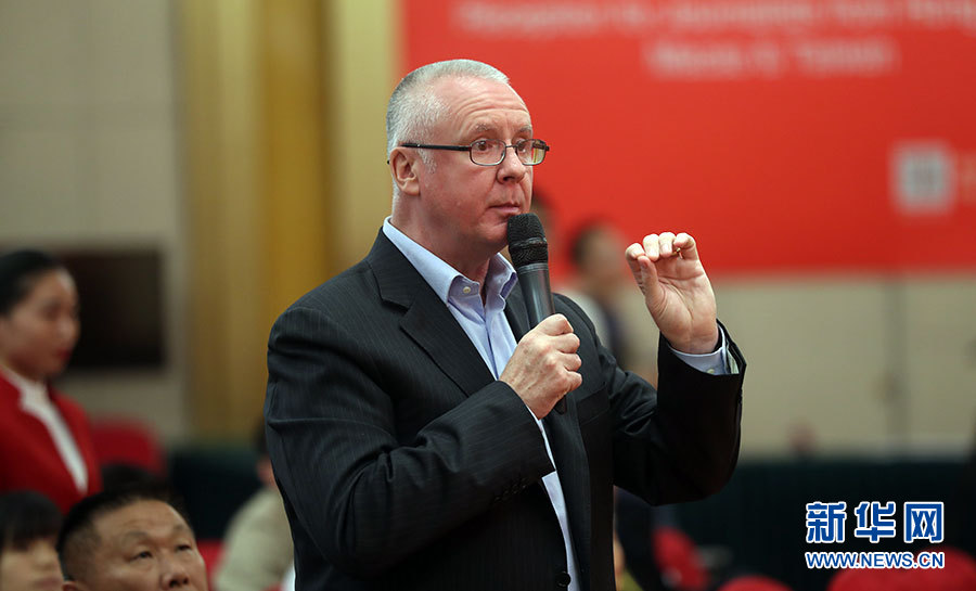 10月20日,十九大新聞中心舉辦集體采訪活動(dòng),主題為“實(shí)施創(chuàng)新驅(qū)動(dòng)發(fā)展戰(zhàn)略”。圖為中國國際電視臺(tái)記者提問。新華網(wǎng) 郝廣鵬攝