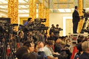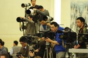 外國媒體記者在會場做好準備