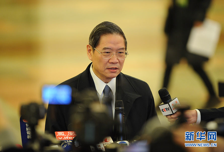 3月5日,第十二屆全國人民代表大會第三次會議在北京人民大會堂開幕。圖為國臺辦主任張志軍接受采訪。新華網(wǎng)/中國政府網(wǎng) 翟子赫攝
