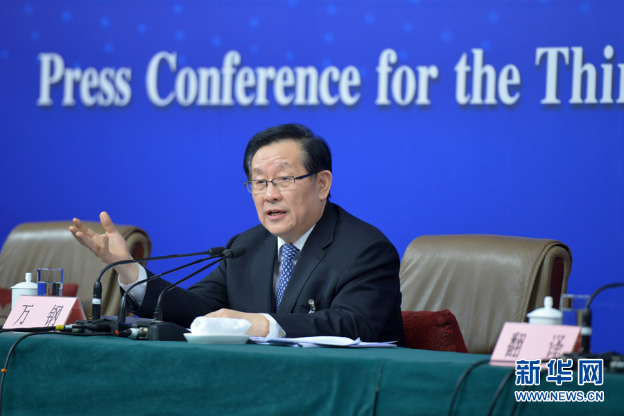 ????? 十二屆全國人大三次會(huì)議新聞中心于3月11日10時(shí)45分舉行記者會(huì),邀請(qǐng)科技部部長萬鋼就科技改革與發(fā)展回答中外記者提問。圖為萬鋼回答記者提問。新華網(wǎng)/中國政府網(wǎng) 郭小天 攝