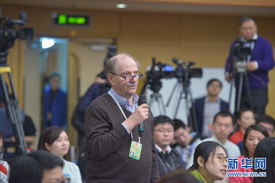 ???? 十二屆全國(guó)人大三次會(huì)議新聞中心于3月11日10時(shí)45分舉行記者會(huì),邀請(qǐng)科技部部長(zhǎng)萬(wàn)鋼就科技改革與發(fā)展回答中外記者提問(wèn)。圖為德國(guó)世界報(bào)記者提問(wèn)。新華網(wǎng)/中國(guó)政府網(wǎng) 郭小天 攝