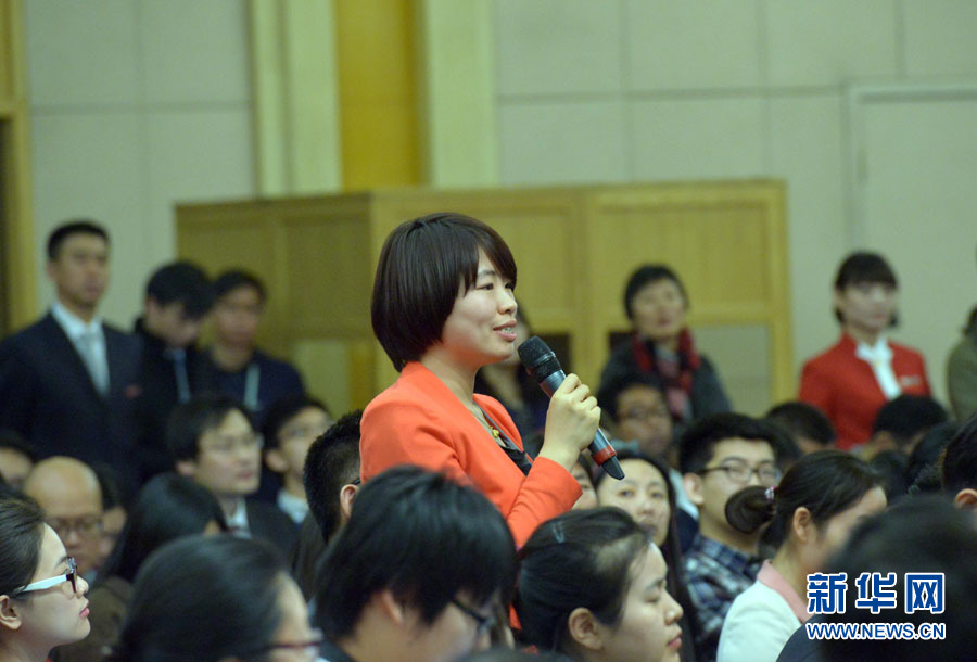 ????十二屆全國(guó)人大三次會(huì)議新聞中心于3月12日在梅地亞中心多功能廳舉行記者會(huì),邀請(qǐng)中國(guó)人民銀行行長(zhǎng)周小川,中國(guó)人民銀行副行長(zhǎng)、國(guó)家外匯管理局局長(zhǎng)易綱,中國(guó)人民銀行副行長(zhǎng)潘功勝,絲路基金有限責(zé)任公司董事長(zhǎng)金琦就金融改革與發(fā)展回答中外記者提問(wèn)。圖為京華時(shí)報(bào)記者提問(wèn)。新華網(wǎng)/中國(guó)政府網(wǎng) 郭小天攝