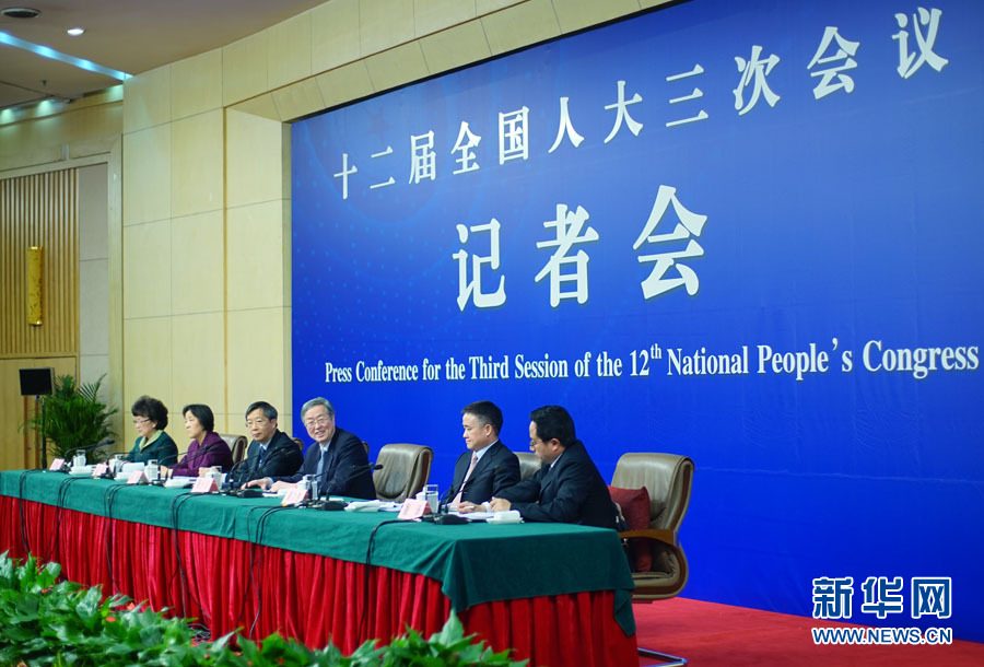 ????十二屆全國(guó)人大三次會(huì)議新聞中心于3月12日在梅地亞中心多功能廳舉行記者會(huì),邀請(qǐng)中國(guó)人民銀行行長(zhǎng)周小川,中國(guó)人民銀行副行長(zhǎng)、國(guó)家外匯管理局局長(zhǎng)易綱,中國(guó)人民銀行副行長(zhǎng)潘功勝,絲路基金有限責(zé)任公司董事長(zhǎng)金琦就金融改革與發(fā)展回答中外記者提問(wèn)。圖為中國(guó)人民銀行行長(zhǎng)周小川等答記者問(wèn)。新華網(wǎng)/中國(guó)政府網(wǎng) 郭小天攝