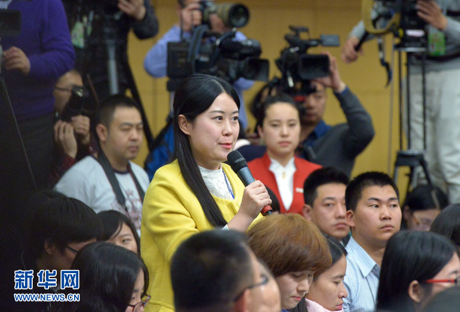 ????十二屆全國人大三次會議新聞中心于3月12日在梅地亞中心多功能廳舉行記者會,邀請中國人民銀行行長周小川,中國人民銀行副行長、國家外匯管理局局長易綱,中國人民銀行副行長潘功勝,絲路基金有限責(zé)任公司董事長金琦就金融改革與發(fā)展回答中外記者提問。圖為香港衛(wèi)視記者提問。新華網(wǎng)/中國政府網(wǎng) 郭小天攝