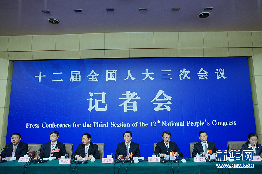 ????3月13日上午10時,十二屆全國人大三次會議新聞中心邀請四川大學(xué)校長謝和平、江蘇省教育廳廳長沈健、廣東省教育廳廳長羅偉其、海南大學(xué)校長李建保、貴州大學(xué)校長鄭強就完善高等教育治理結(jié)構(gòu)的相關(guān)問題回答中外記者提問。圖為出席記者會的嘉賓。新華網(wǎng)/中國政府網(wǎng) 郭小天 攝