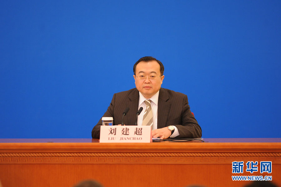 ????3月15日,國務(wù)院總理李克強(qiáng)在人民大會堂三樓金色大廳會見采訪十二屆全國人大三次會議的中外記者并回答記者提出的問題。圖為外交部部長助理兼新聞司司長劉建超。新華網(wǎng)/中國政府網(wǎng) 翟子赫 攝