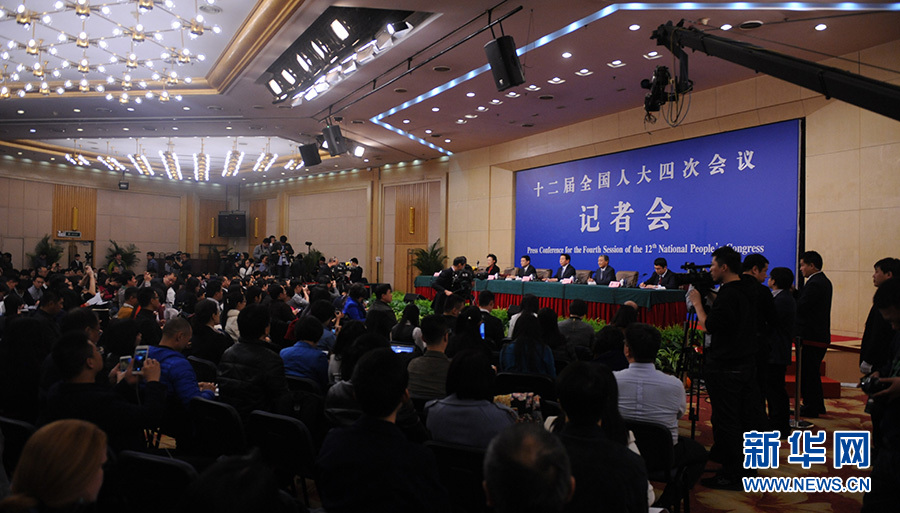 ?????十二屆全國人大四次會議新聞中心于3月12日(星期六)14時30分在梅地亞中心多功能廳舉行記者會,邀請國務院國有資產(chǎn)監(jiān)督管理委員會主任肖亞慶、副主任張喜武、副主任黃丹華和副秘書長、新聞發(fā)言人彭華崗就“國企改革”的相關(guān)問題回答中外記者的提問。圖為記者會現(xiàn)場。新華網(wǎng)/中國政府網(wǎng)? 陳杰? 攝