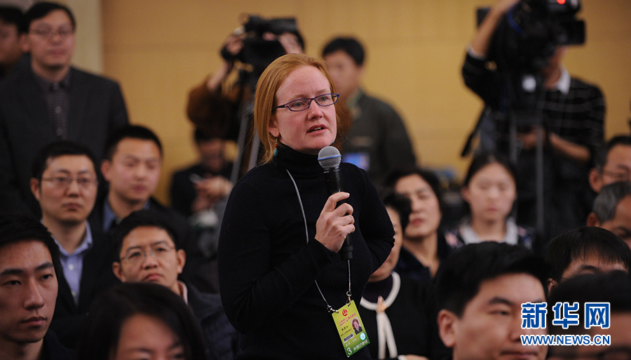 ?????十二屆全國人大四次會議新聞中心于3月12日(星期六)14時30分在梅地亞中心多功能廳舉行記者會,邀請國務(wù)院國有資產(chǎn)監(jiān)督管理委員會主任肖亞慶、副主任張喜武、副主任黃丹華和副秘書長、新聞發(fā)言人彭華崗就“國企改革”的相關(guān)問題回答中外記者的提問。圖為金融時報記者提問。新華網(wǎng)/中國政府網(wǎng) 陳杰 攝