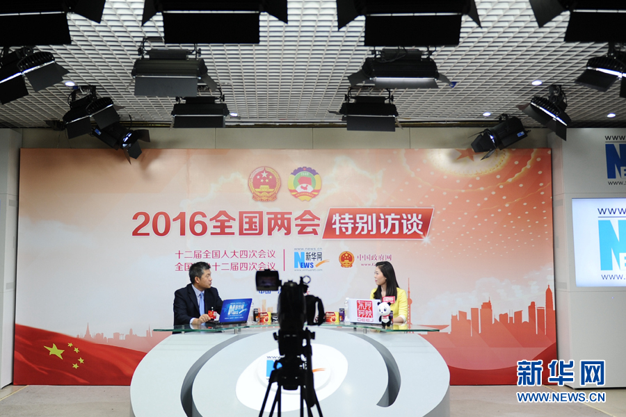 ??? 2016年3月12日,全國政協(xié)委員,內(nèi)蒙古蒙草公司董事長兼總經(jīng)理王召明做客新華網(wǎng)兩會訪談。圖為王召明在訪談現(xiàn)場。新華網(wǎng) 賈海元 攝